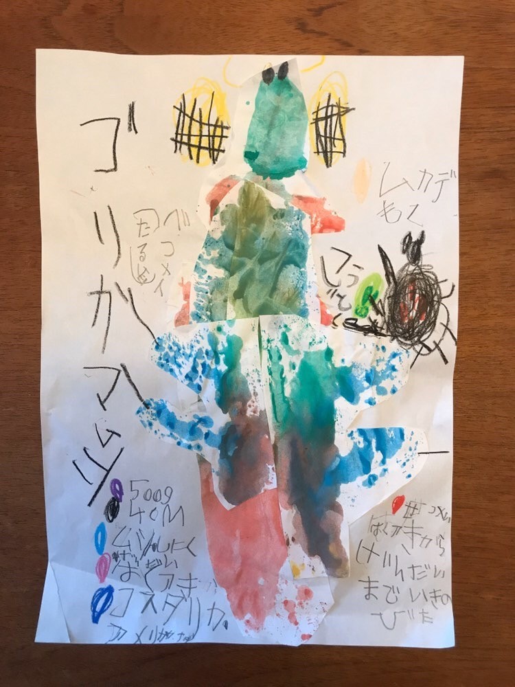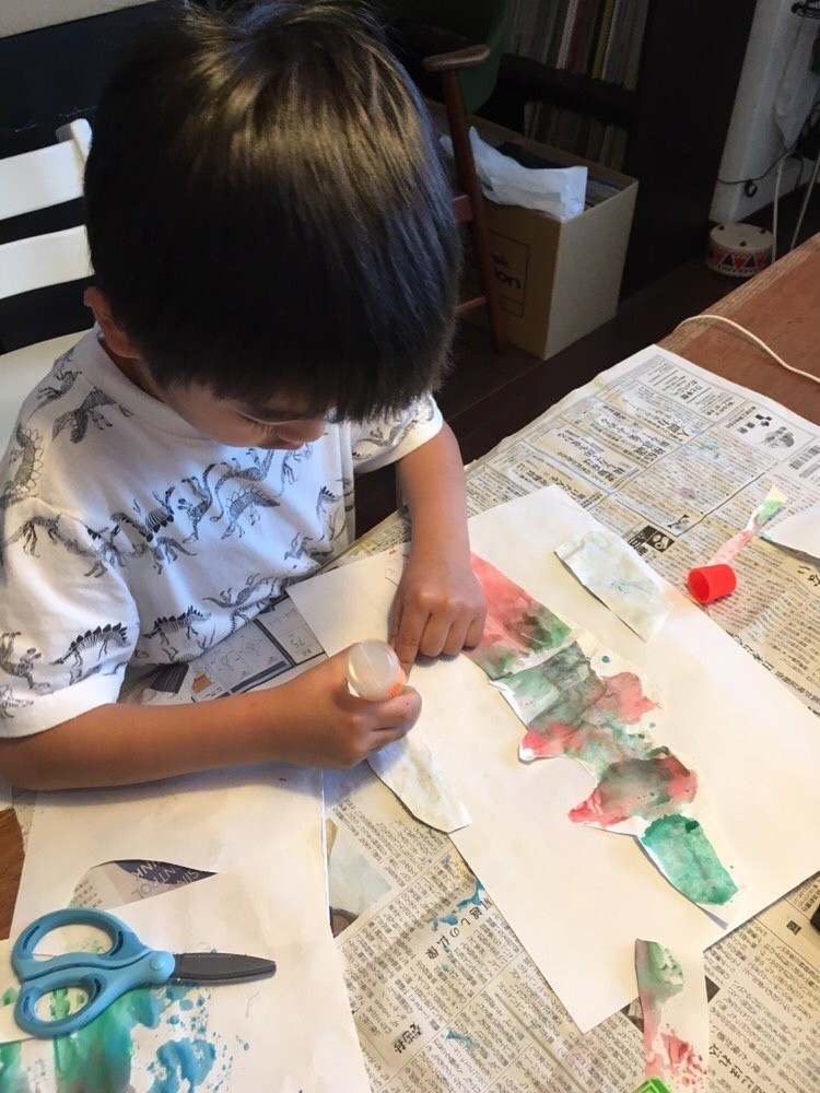 どんな模様になるのかわくわくしながら紙を開くのは手伝っている親もとても楽しく、今まで息子はあまり考えず適当に作業するタイプだと思っていましたが、じっくり絵の具の色を選んで使ったり並べ方を考えたりと、親として子どもの知らない部分を発見する機会ともなりました。
