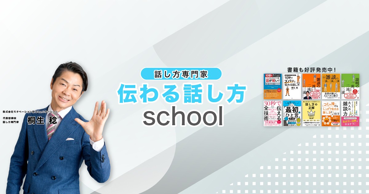 累計5万人が受講したモチベーション&コミュニケーションスクールが、決して本やネットでは学べない即効性のある話し方スキルをお届けします。