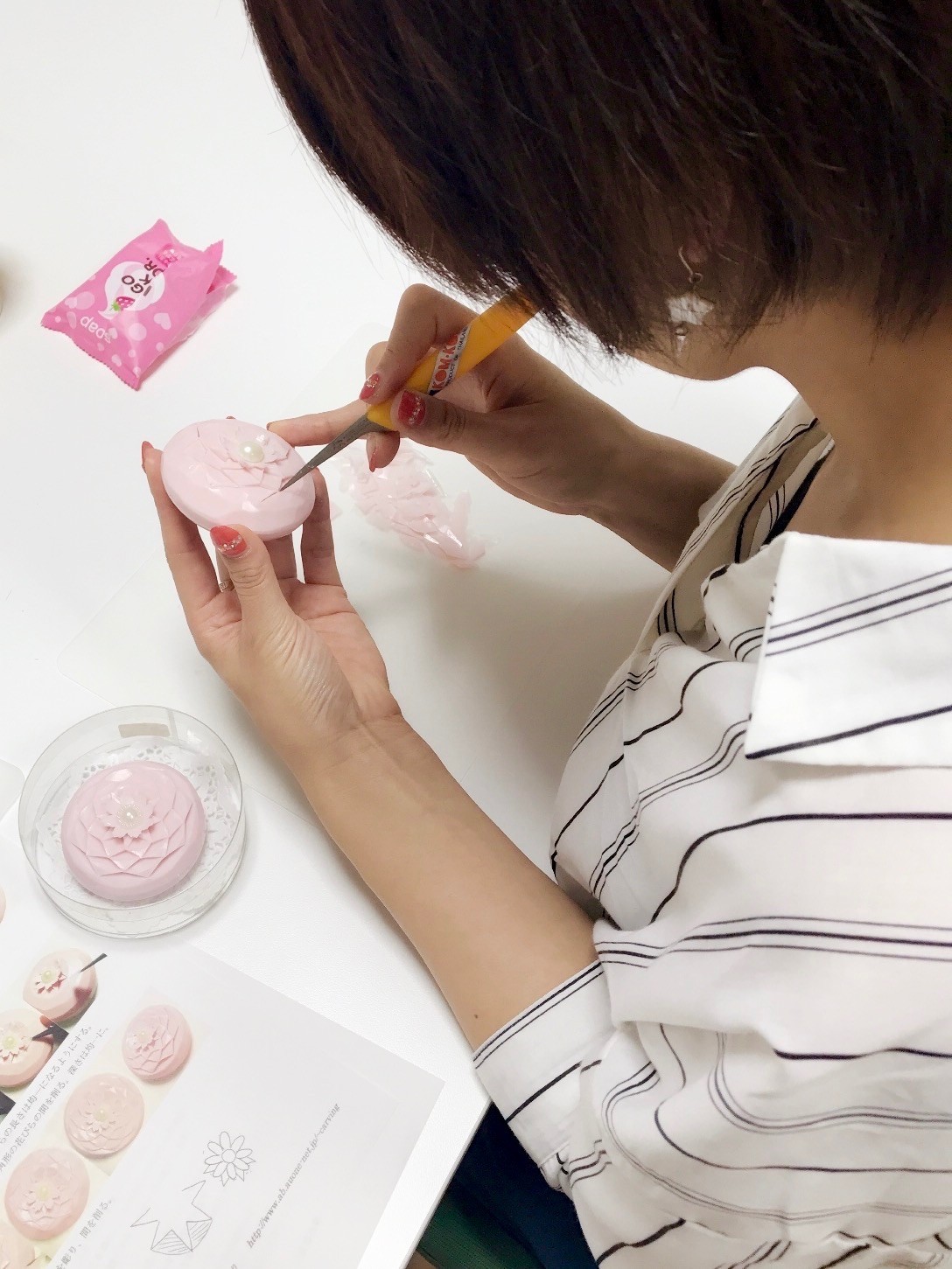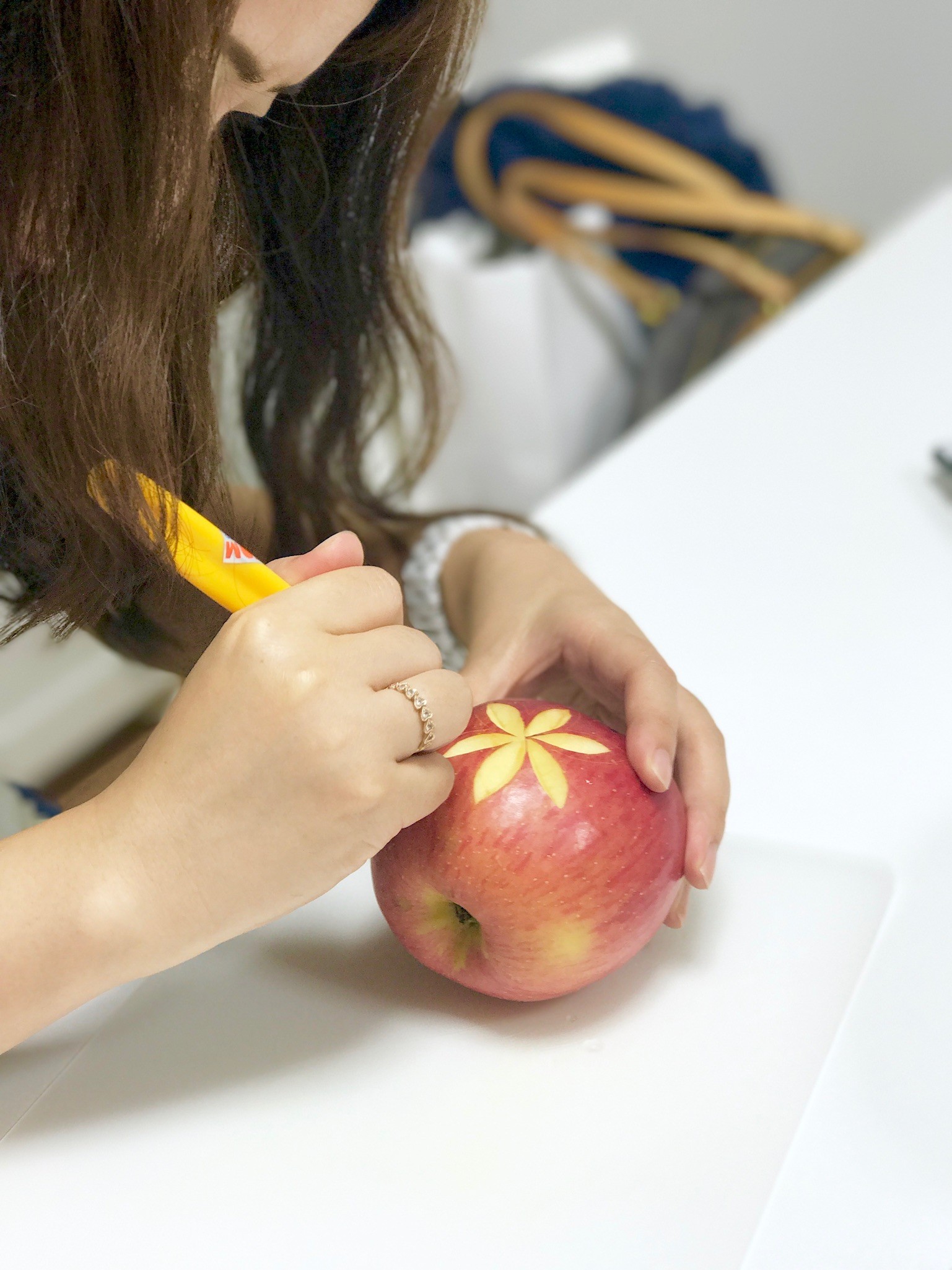 カービング体験してきました。りんごにカービングナイフで模様を掘りました。カービング自体が初めてでしたが、楽しくて、集中して掘っていたら、あっという間の2時間でした。優しく丁寧に教えてくださる先生で、先生の作品を見たら、とても凄い方でビックリしました。カービングをやってみたくてストアカで調べて先生に辿り着き、受講申請しました。快く開催して頂き、感謝です。基本マンツーマンの様で、1:1と言うのも嬉しかったです。ありがとうございました。