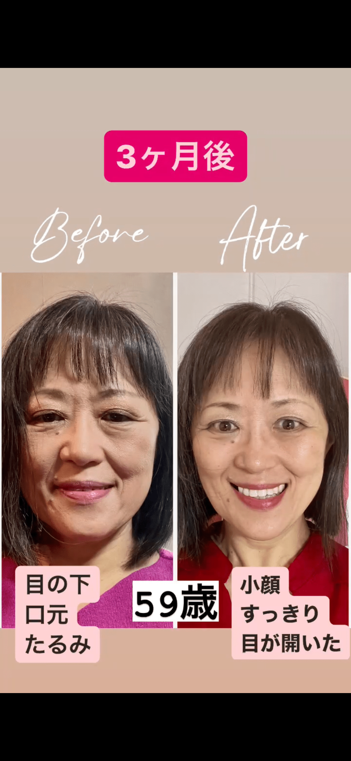 🗣️「頬のたるみが気になっていましたが、顔にメリハリが出てきました」