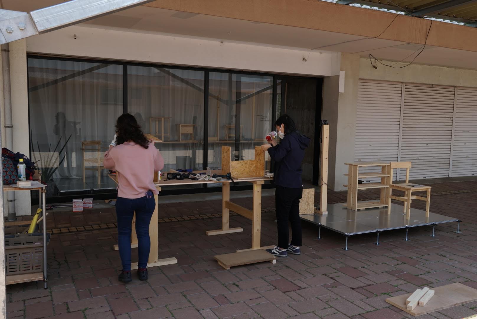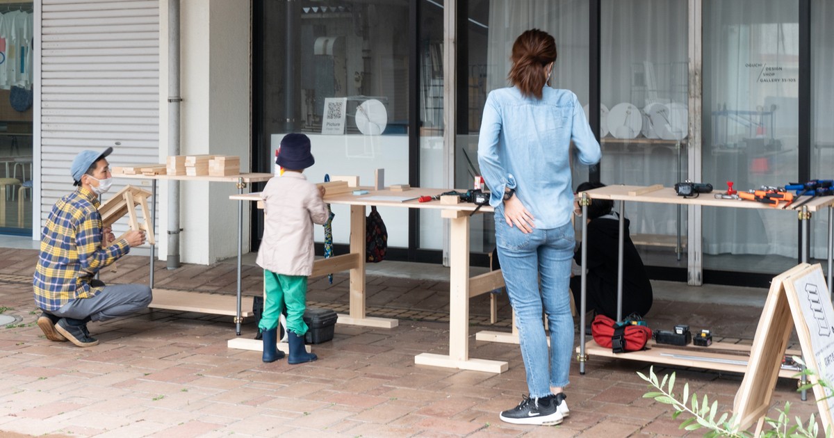 昔ながらの団地の商店街に位置したデザイン事務所で、月末に開催している木工教室です。