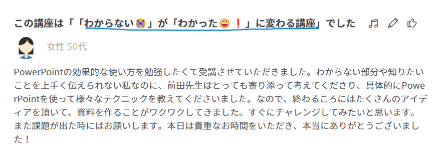 このようなレビューをいただきとても感謝してます。