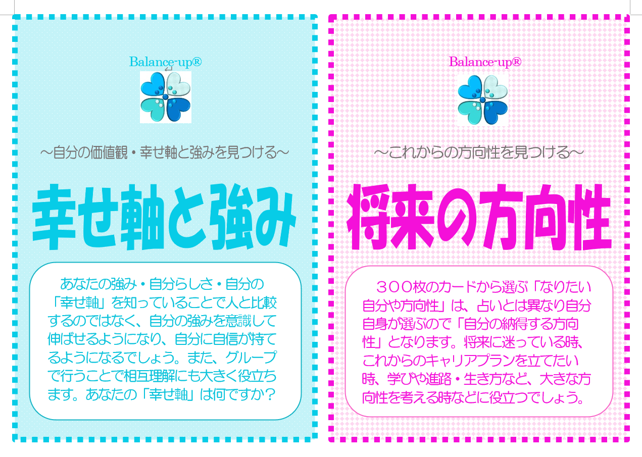 3.各講座のワークでは、300枚の『バランスアップカード』を活用するので楽しい💛&明確な答えがすぐ見つかる!