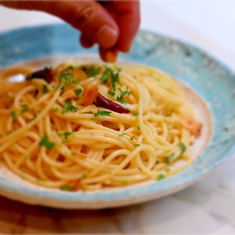 ニンニク、オリーブオイル、唐辛子、パセリ。これらの食材をどんな切り方で?どのタイミングで?など細やかな作り方をご説明しながら一緒に作る教室です!