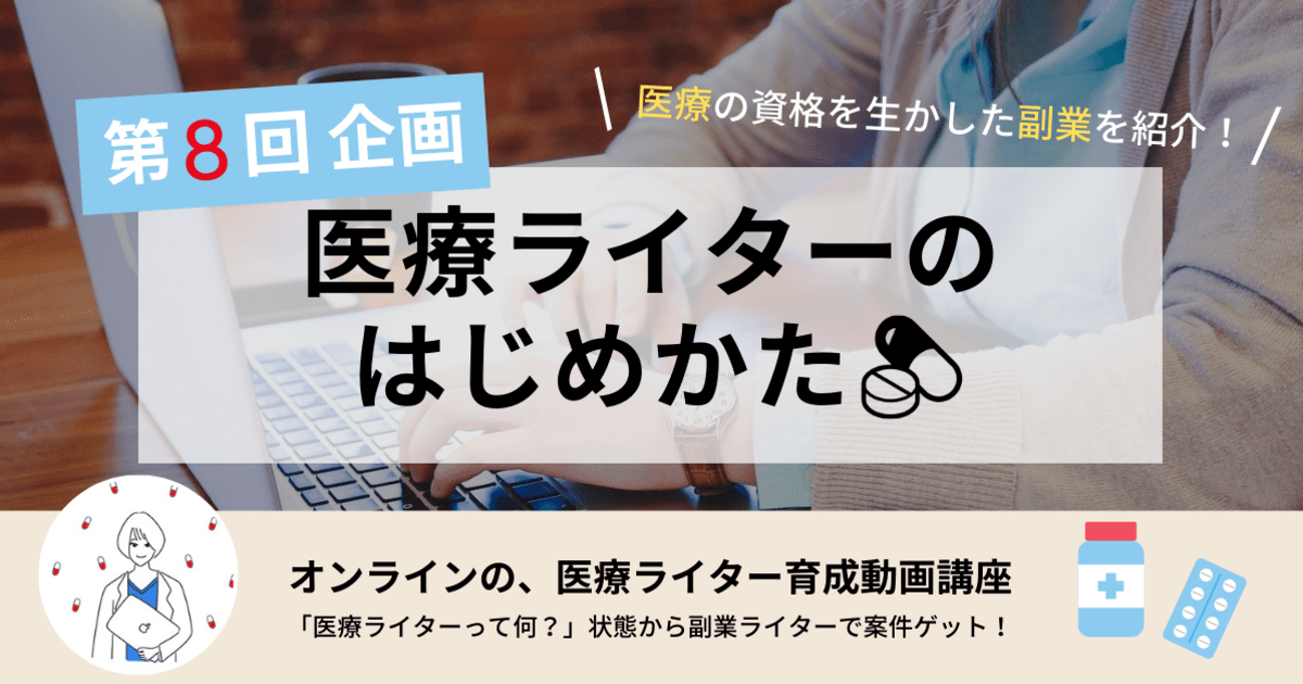 自身の「薬剤師」「ライター講師」の経験を生かし、現在はオンライン動画講座「医療ライターのはじめかた」を運営しています。