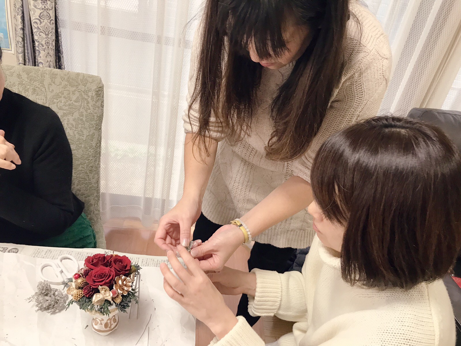 お花に触れる事でゆっくりとでも形になって気持ちも気分も幸せで癒される時間を過ごさせていただきました。