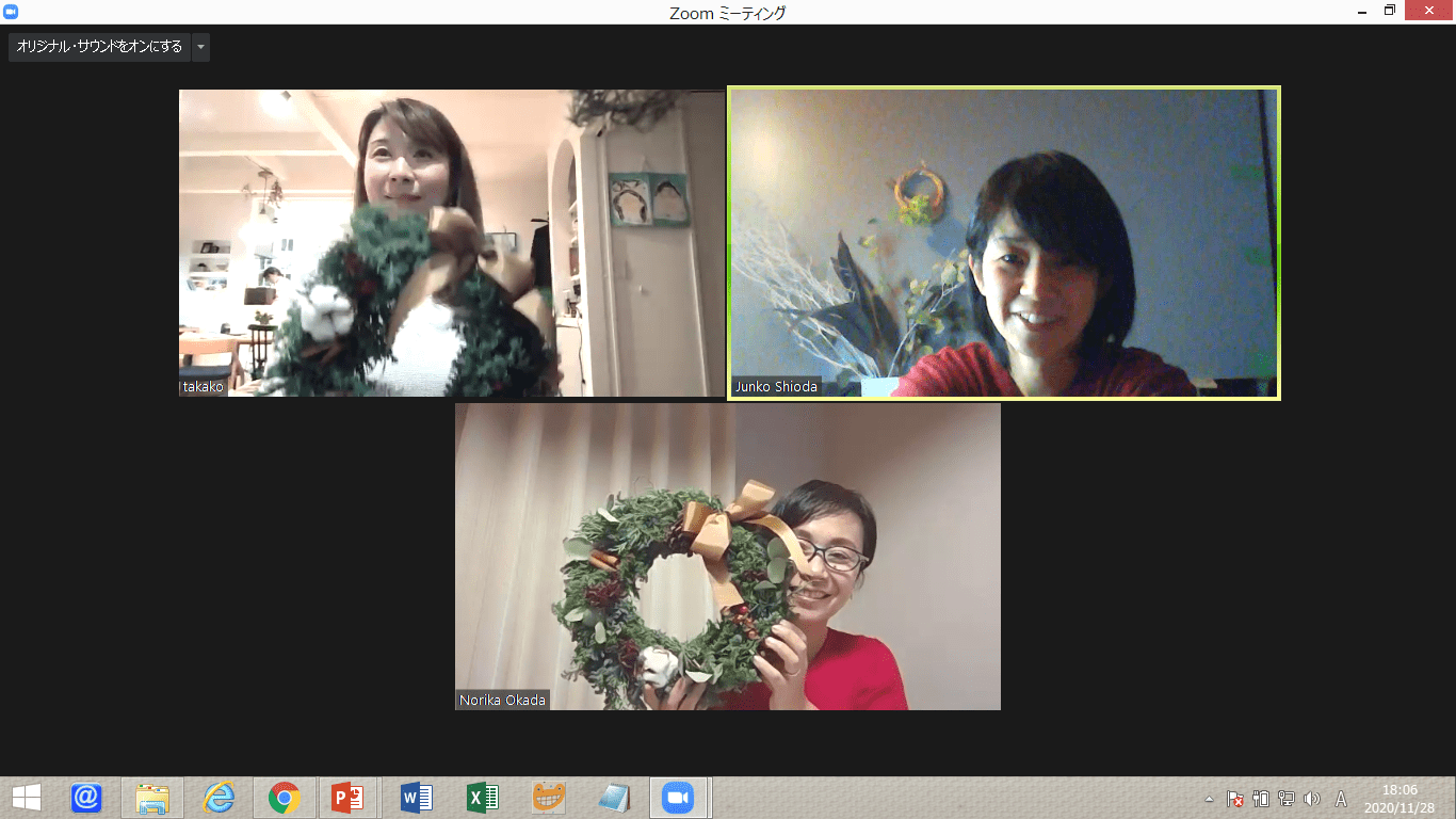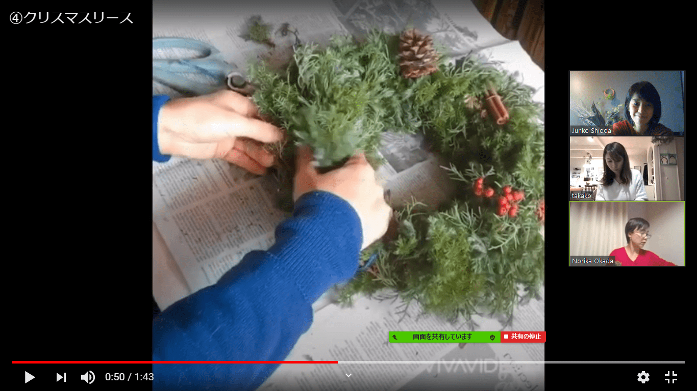 重要なポイントはしっかりレクチャーしてくださった上で初めてで不安気味な私達にどんな仕上がりでも大丈夫、あとからいくらでも手直しもできるから、と安心できる声がけで完成まであたたかく見守っていただきました。参加者それぞれ個性的なリースが出来上がるのもまた興味深かったです。