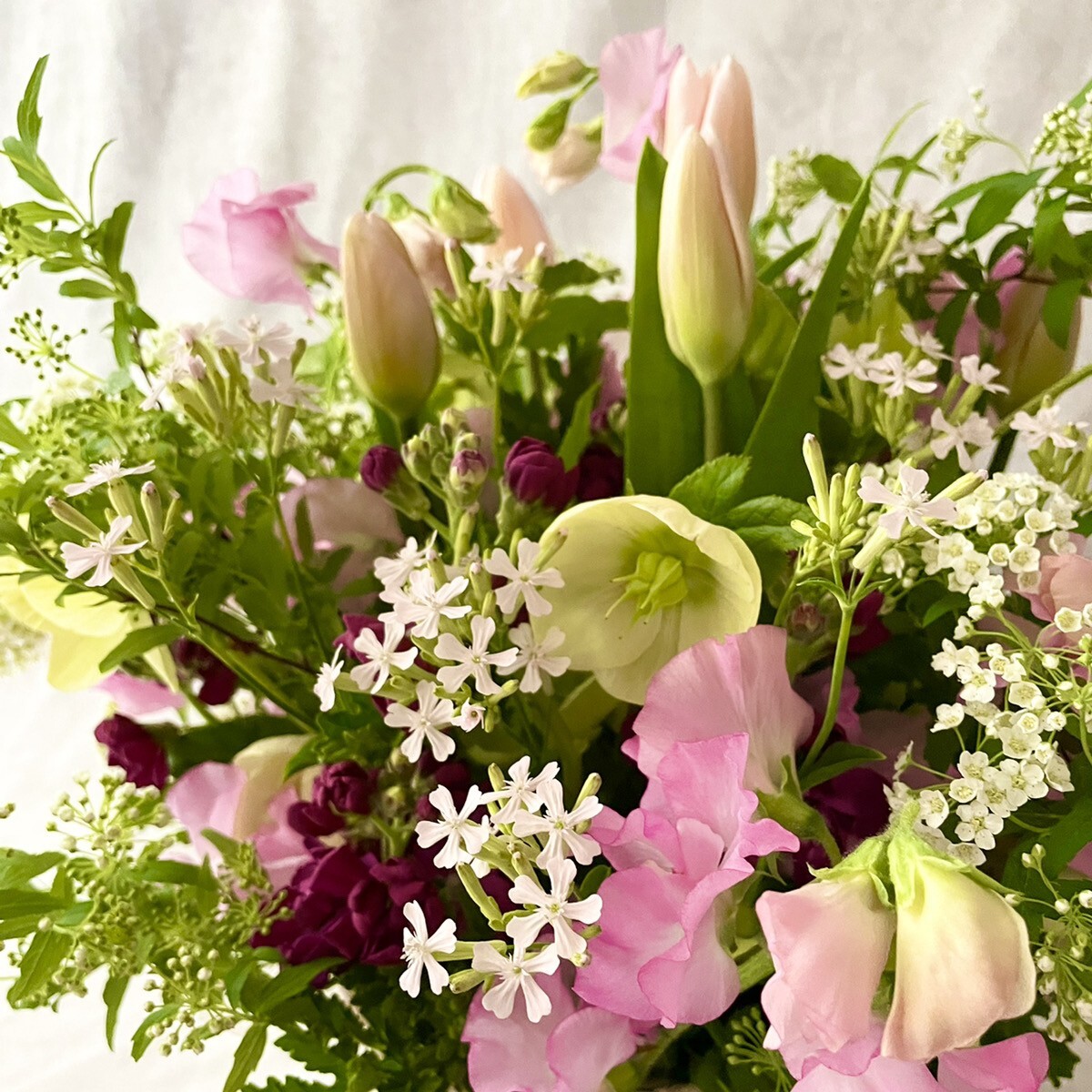 旬のお花やグリーンを使って、おうちに飾ったりプレゼントにもできるアレンジメントやブーケを作ります。基本のアレンジメントから応用の形、素材は生花、ドライフラワー、プリザーブドフラワーなどを使って楽しんでいただけます。生花は市場から直接選んできた新鮮なお花です。お花屋さんでは見かけない花に触れることもできます。