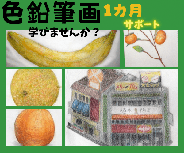 ここでは主にキャラクターや静物画を色鉛筆で描いています。