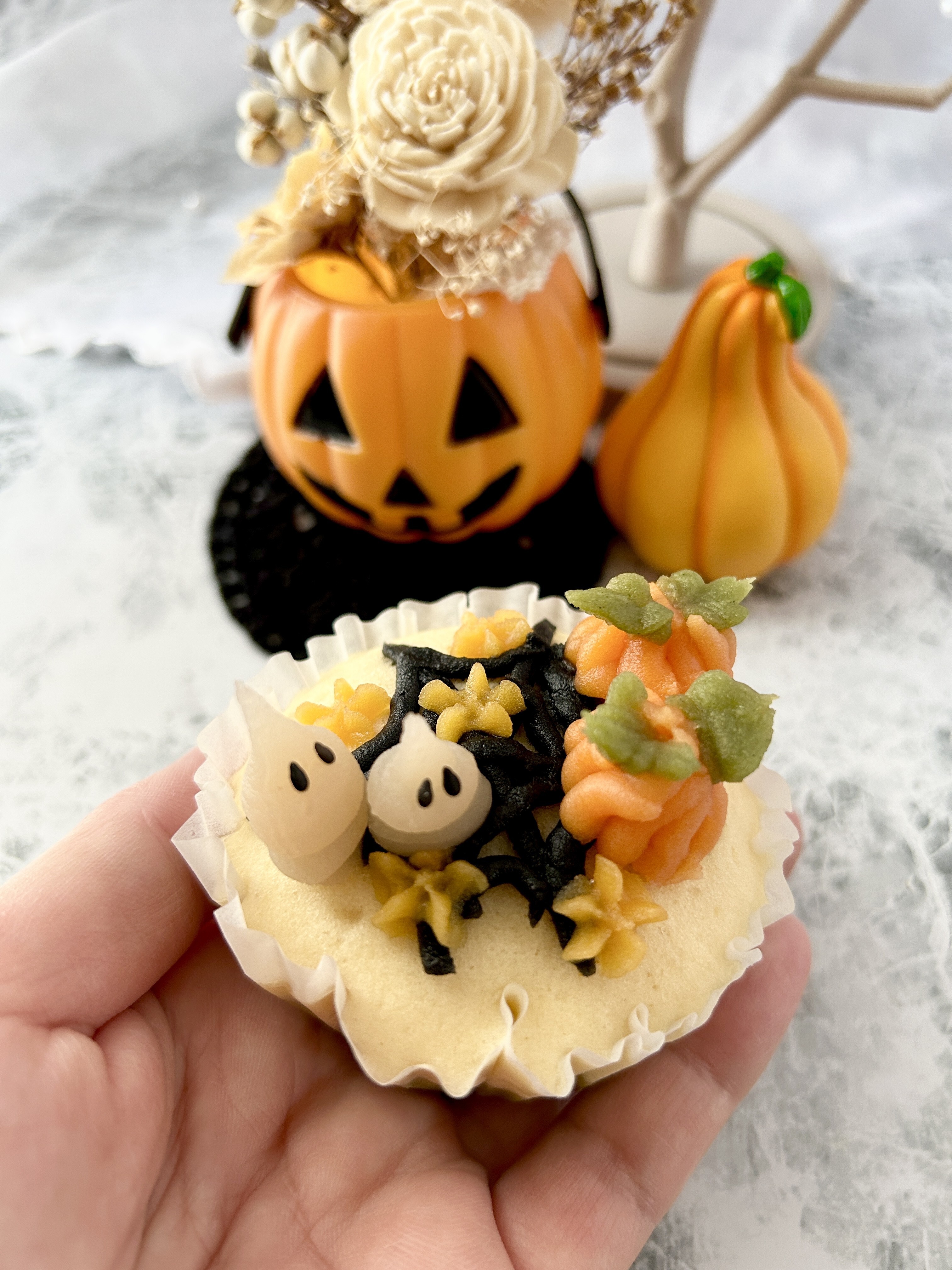 あんフラワーは白餡をお花の形にしぼってかざるお菓子です。