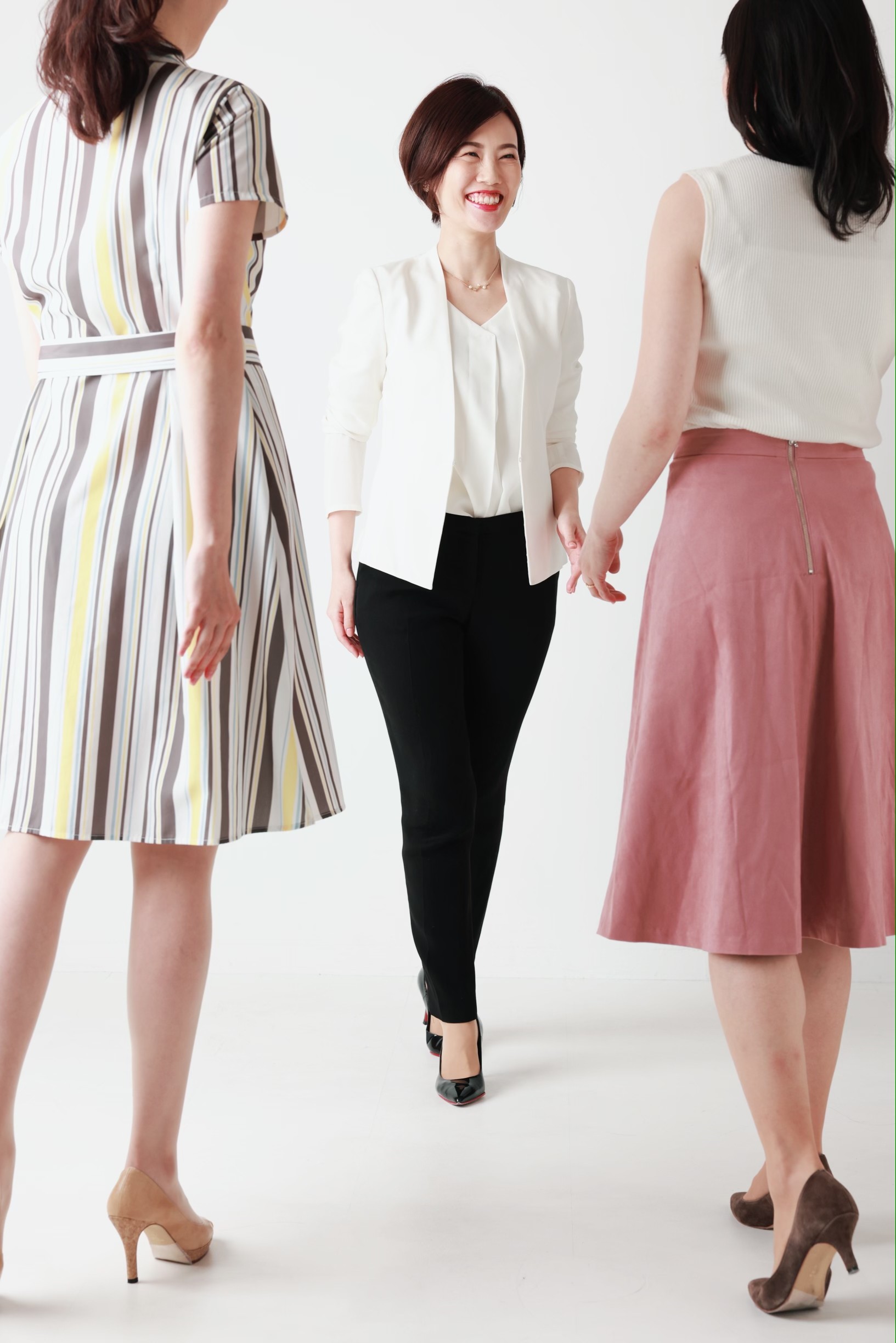 歩き方だけでなく、スニーカー・ヒールなど靴の選び方や履き方など基礎から教えてもらったので、ヒールでも、外反母趾やO脚、腰痛とは無縁です。