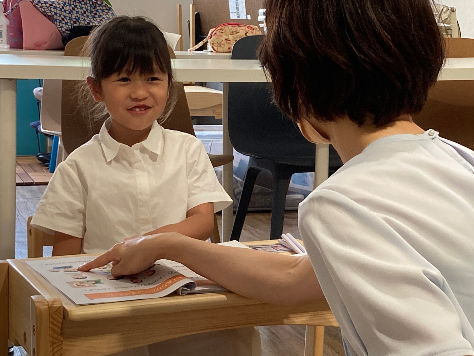 姉妹で受講しました。終始笑いが絶えず、優しい先生で、娘たちも楽しかった~!!と言っていました。下の子の箸の持ち方が長年の癖でなかなか改善しなかったのですが、先生から教えてもらった通りにできていました。