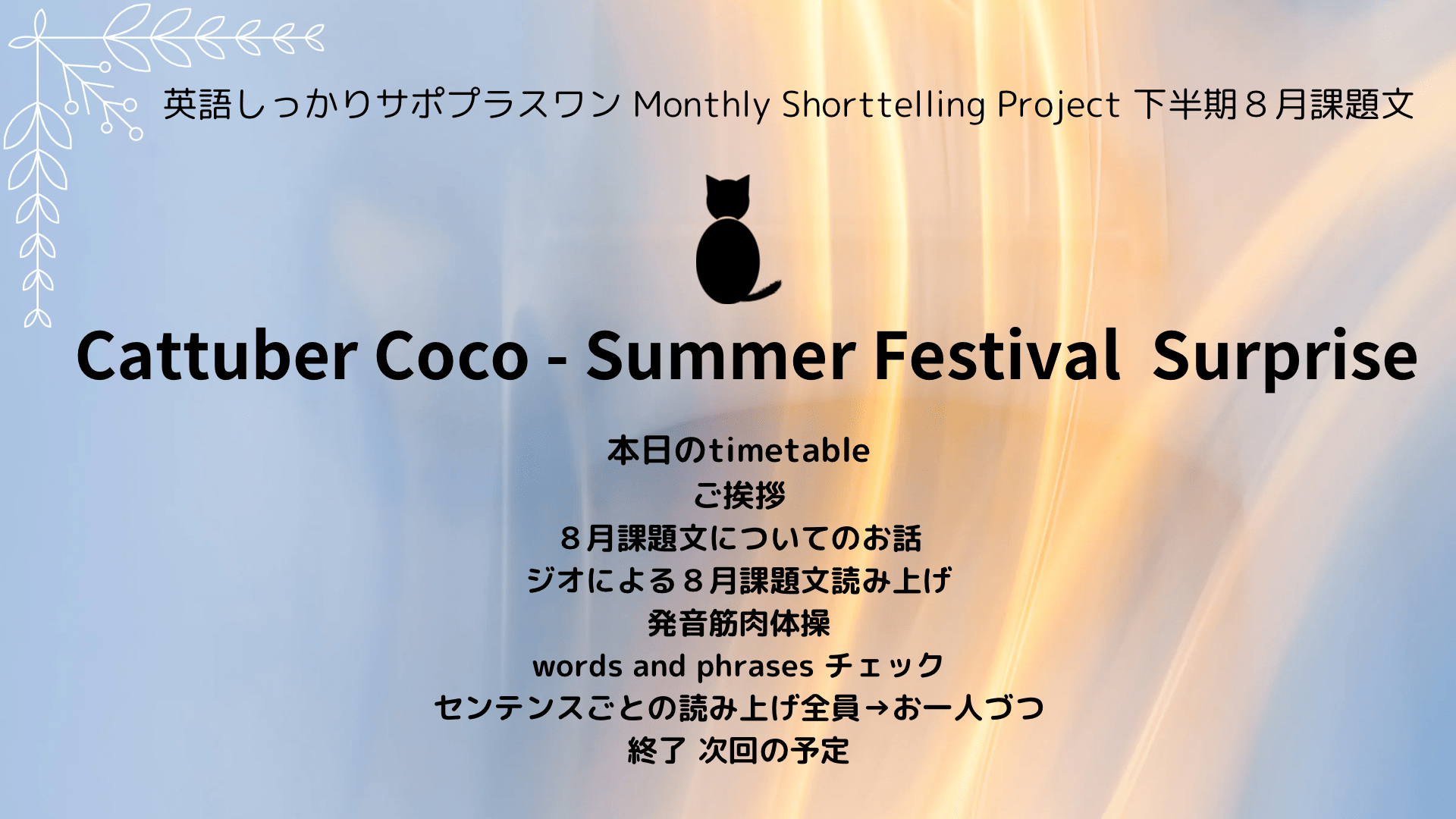 オリジナル英文ショートストーリーの作家でもあります。私が作ったかわいいストーリーを一緒に読み、発音、文法、表現を学びませんか。
