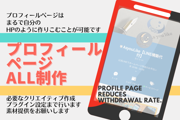 プロフィールページを作りこめばHPを簡単に作る事が出来き、あなただけの公式LINEを作ることが可能です。