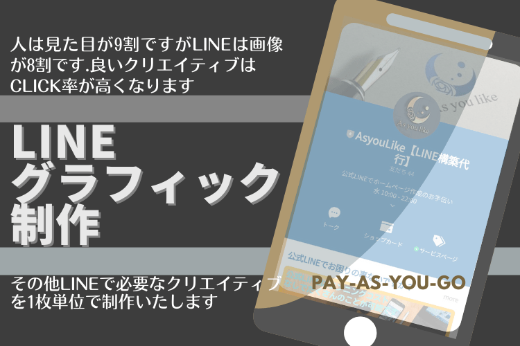 当社では、LINE公式アカウント関連のサービスを提供しております。ご要望に応じて様々な対応が可能です。一度は自分で作ってみたいという方も、一緒に手を動かしてご自身でLINE公式アカウントを作る事も可能です。WEBマーケティングを取り入れたクリエイティブの制作が得意です。