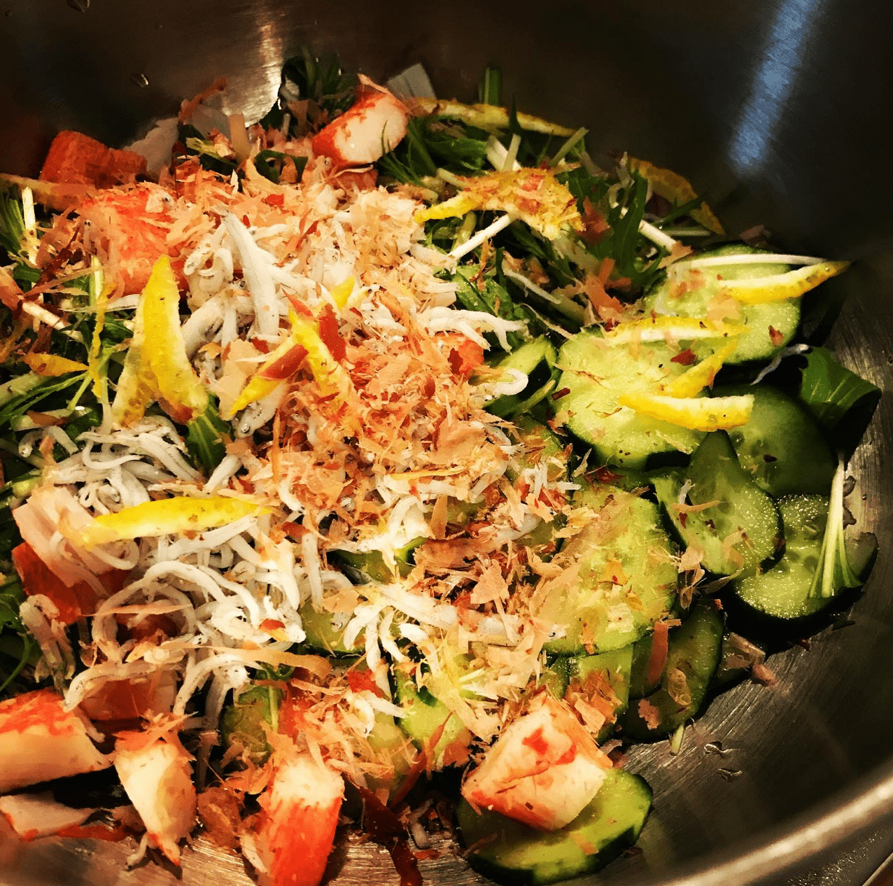 冷蔵庫のストックとその日の気分で決まります。