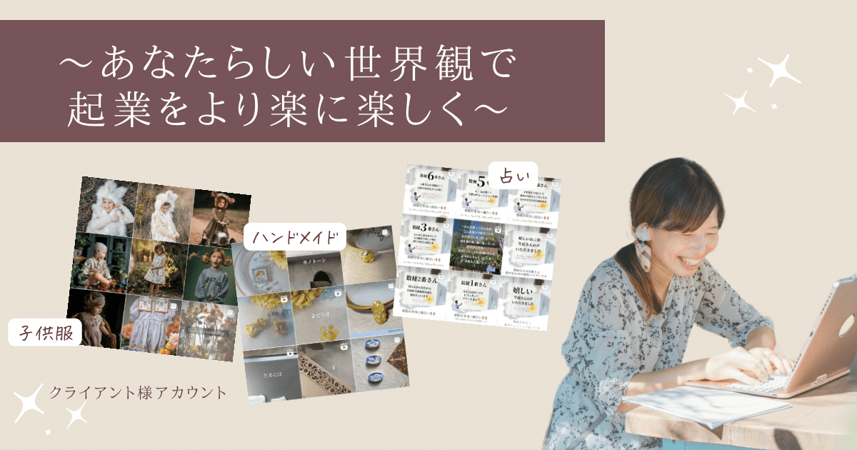 世界観を作ることはもちろん商品&コンセプト設計、仕入れ、販売サイト、マルシェ出店・主催、ブログ、インスタ集客、セールスなど全ての知識と経験をシェア&長期サポート