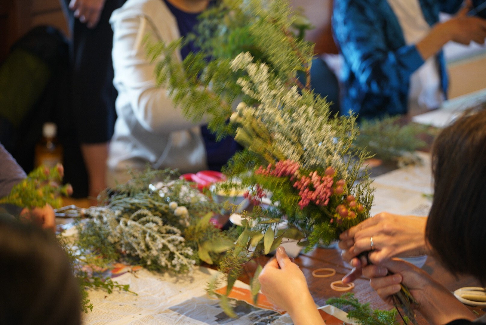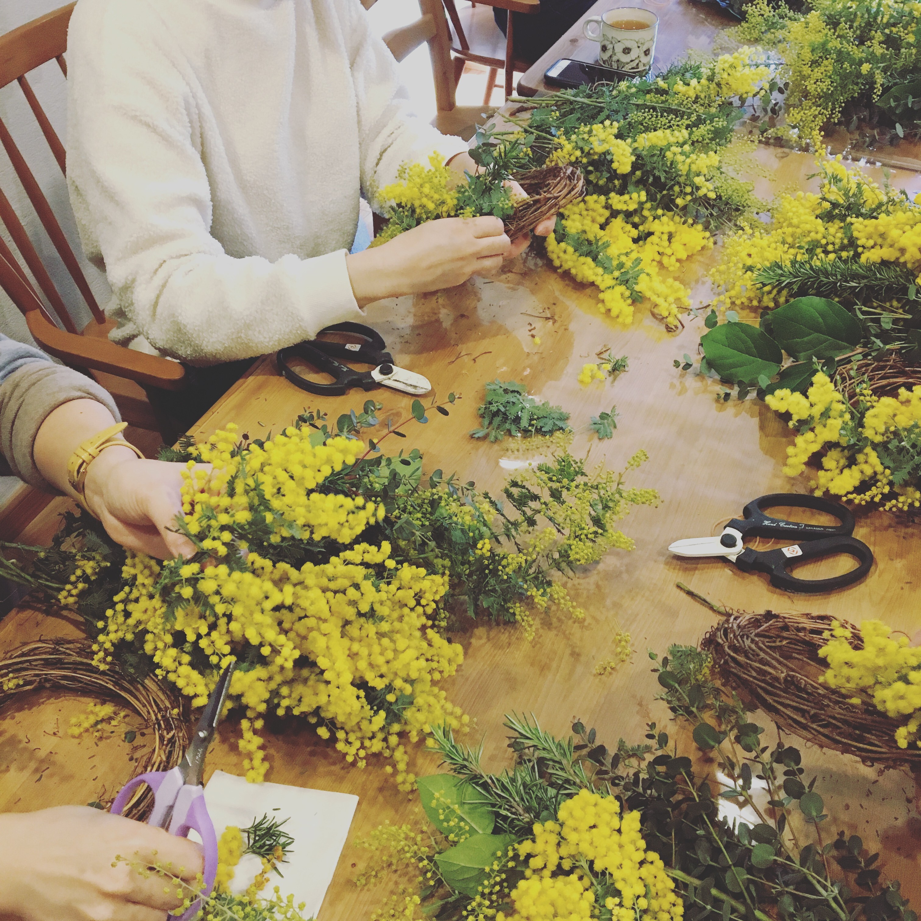 リース初心者でしたが、丁寧な説明と素敵な花材を目の前にし最初からワクワクしました。