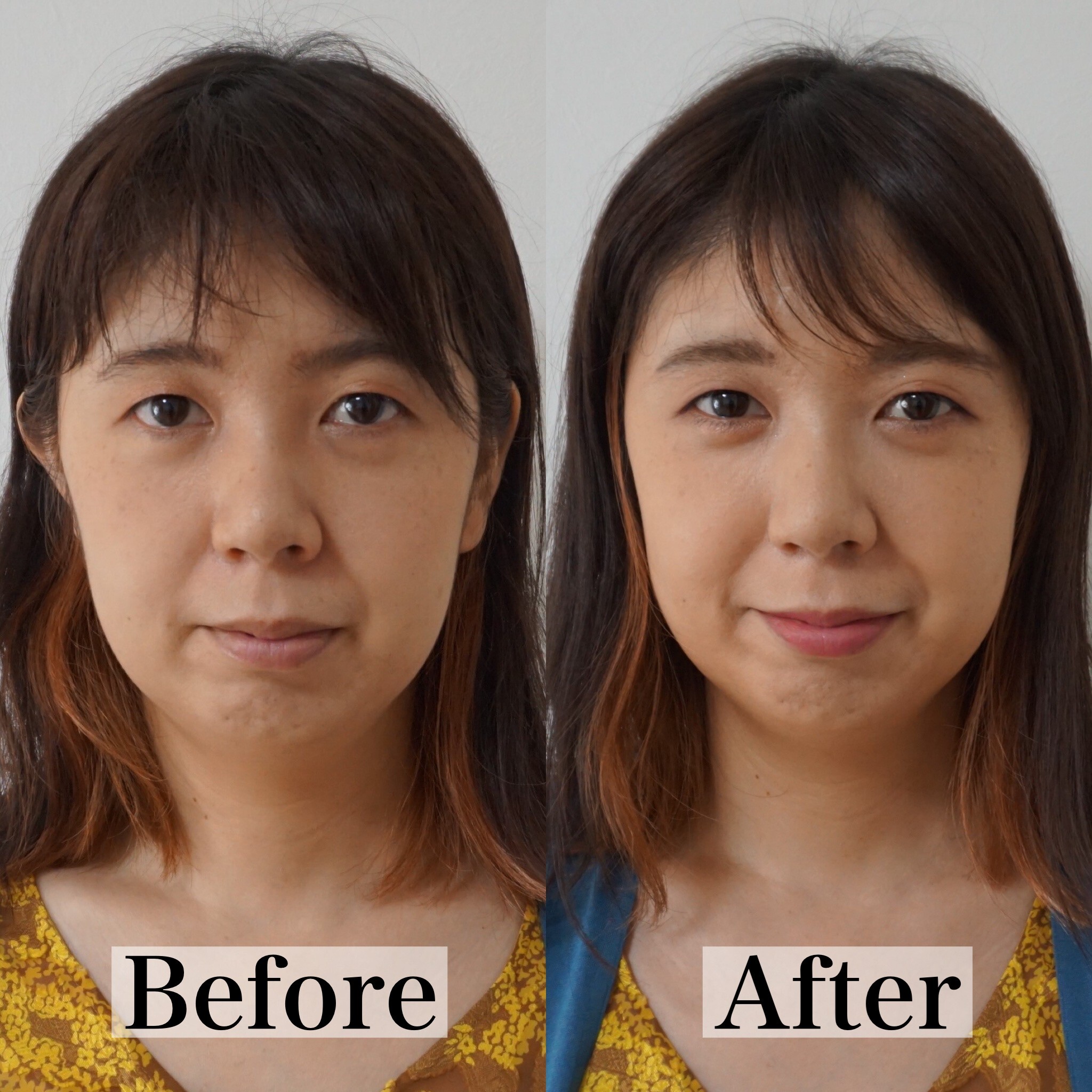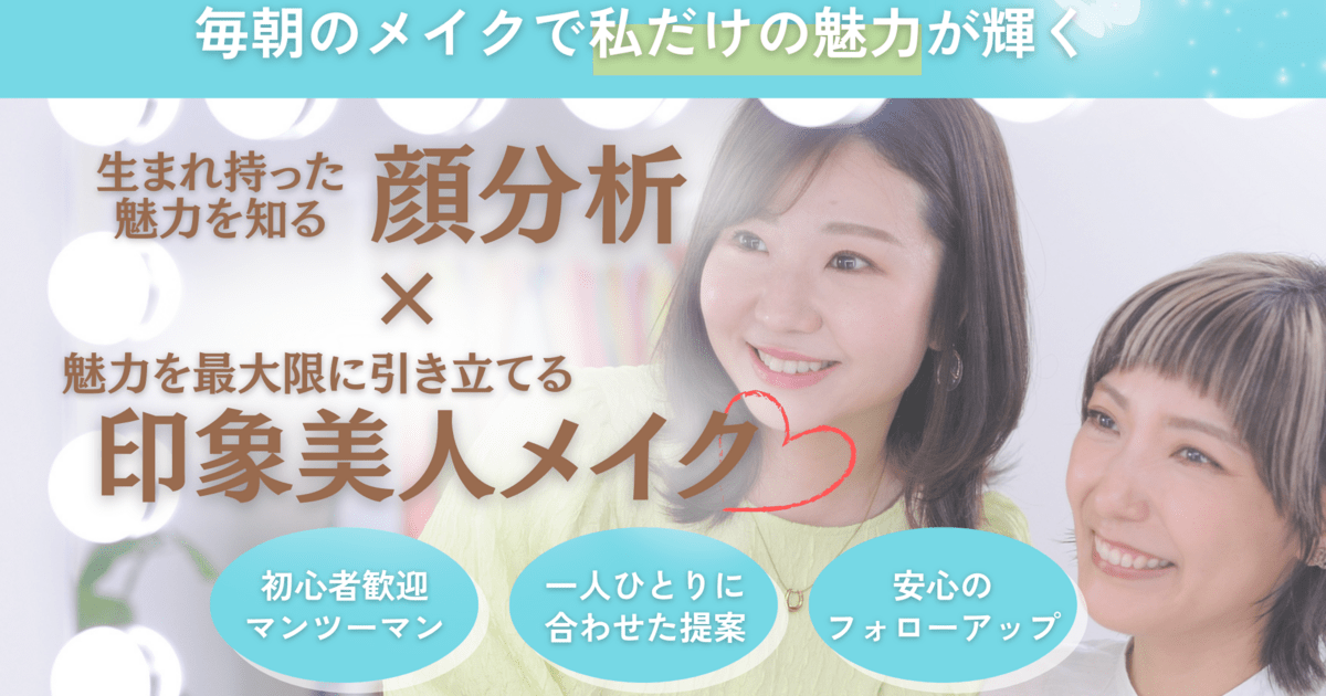 期待以上でした。難しいことはなく、ちょっとしたことで自然に顔が明るくなり、目ヂカラが出て顔が華やかになりました。自分の顔に合わせたメイクが大事なんですね。あきらめかけていた気持ちが、もっと綺麗になりたいと思えました。感謝です。ありがとうございます。