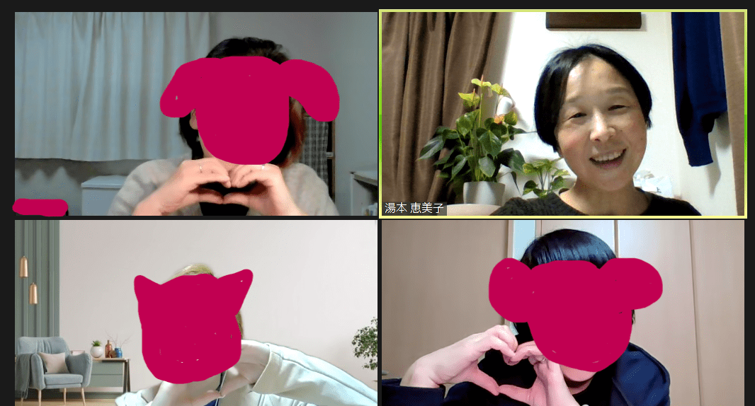 先生の質問やフィードバックが優しくてあったかくて、ホッと出来る1時間。毎日忙しくしていて、考える暇もない毎日、こういう時間って、自分を豊かにしてくれるなと思います。えみこ先生に感謝です!