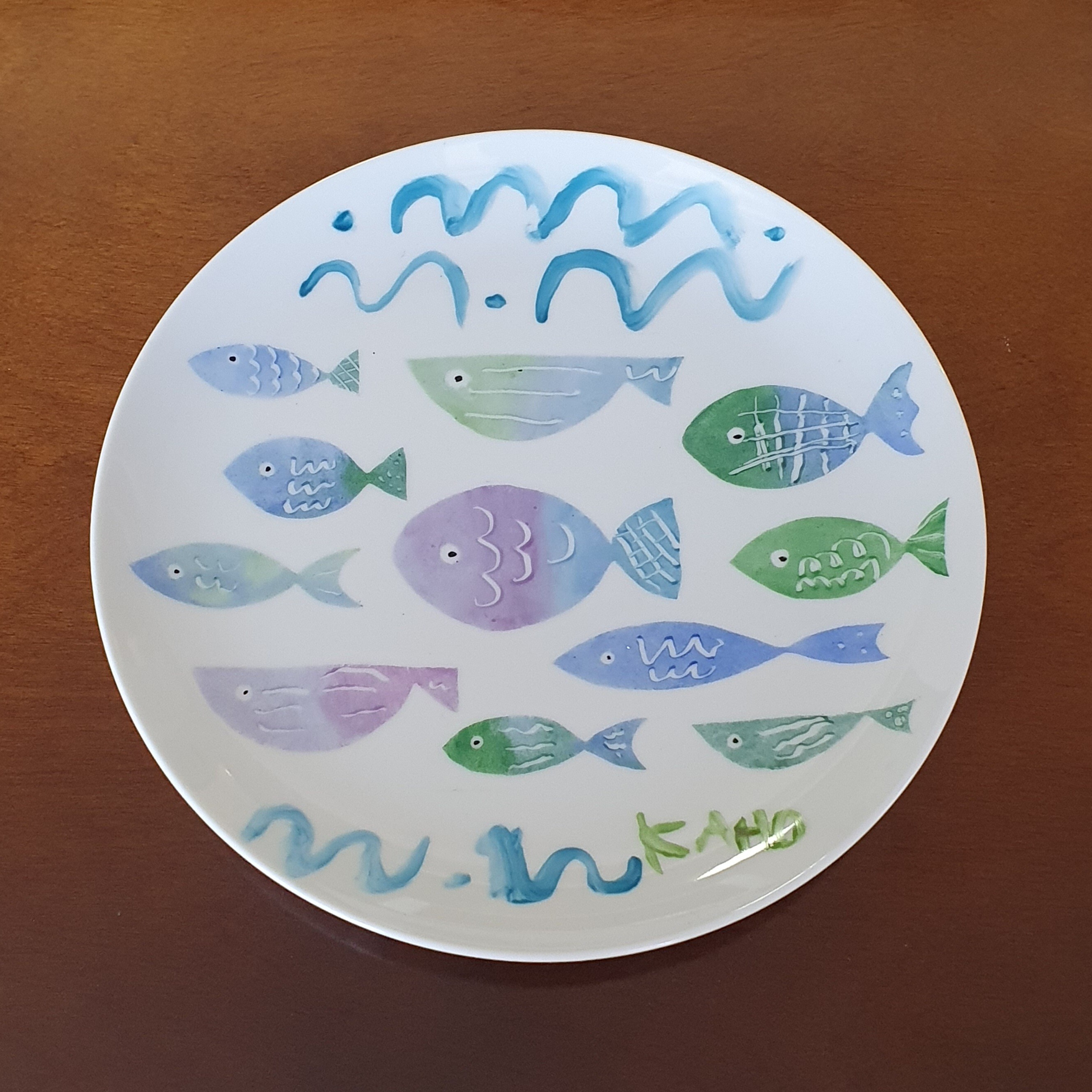 描いた作品はお預かりして800度で焼き、後日お渡しいたします。