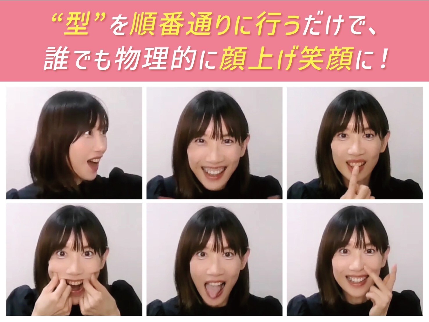 順番通りにポーズを行えば、笑顔になるのが苦手な人でも、物理的に「顔上げ笑顔」が作れるようになっています。