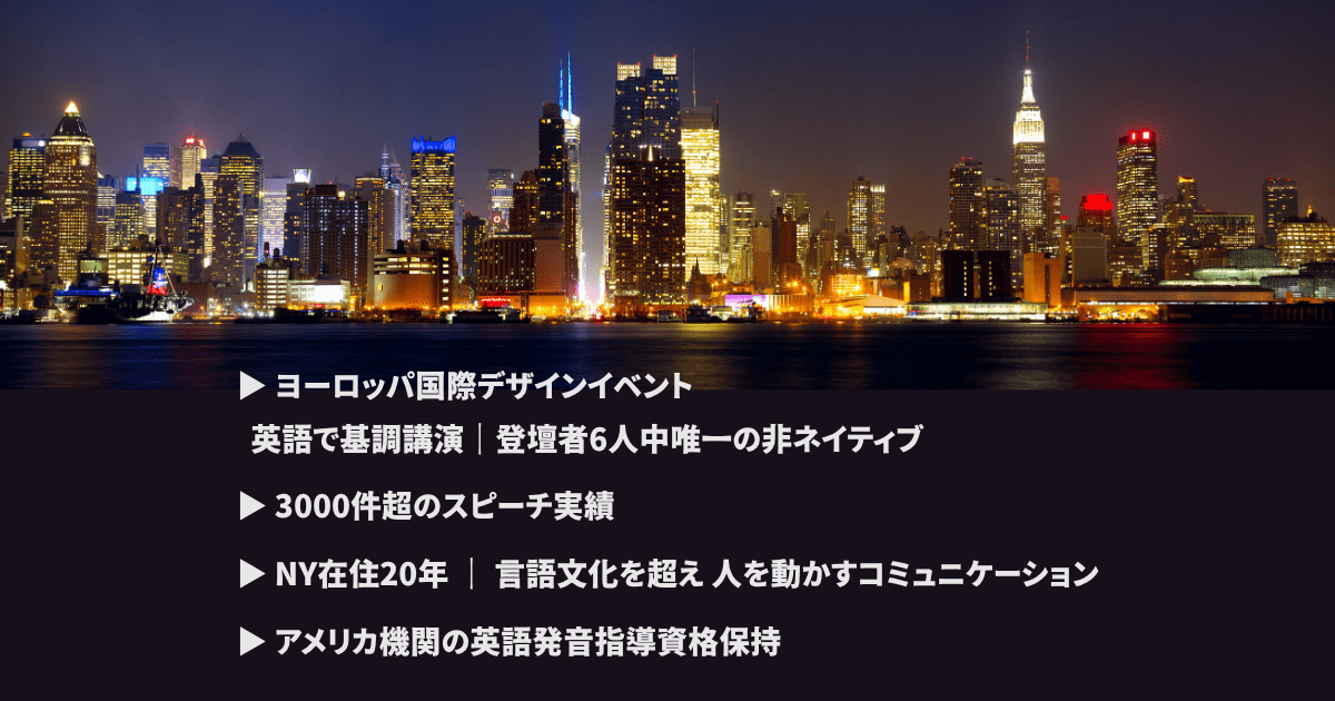 NYで20年にわたってアメリカ企業で英語を使い仕事をし、ヨーロッパの国際デザインイベントでは、唯一の非ネイティブとして英語で基調講演も行いました。