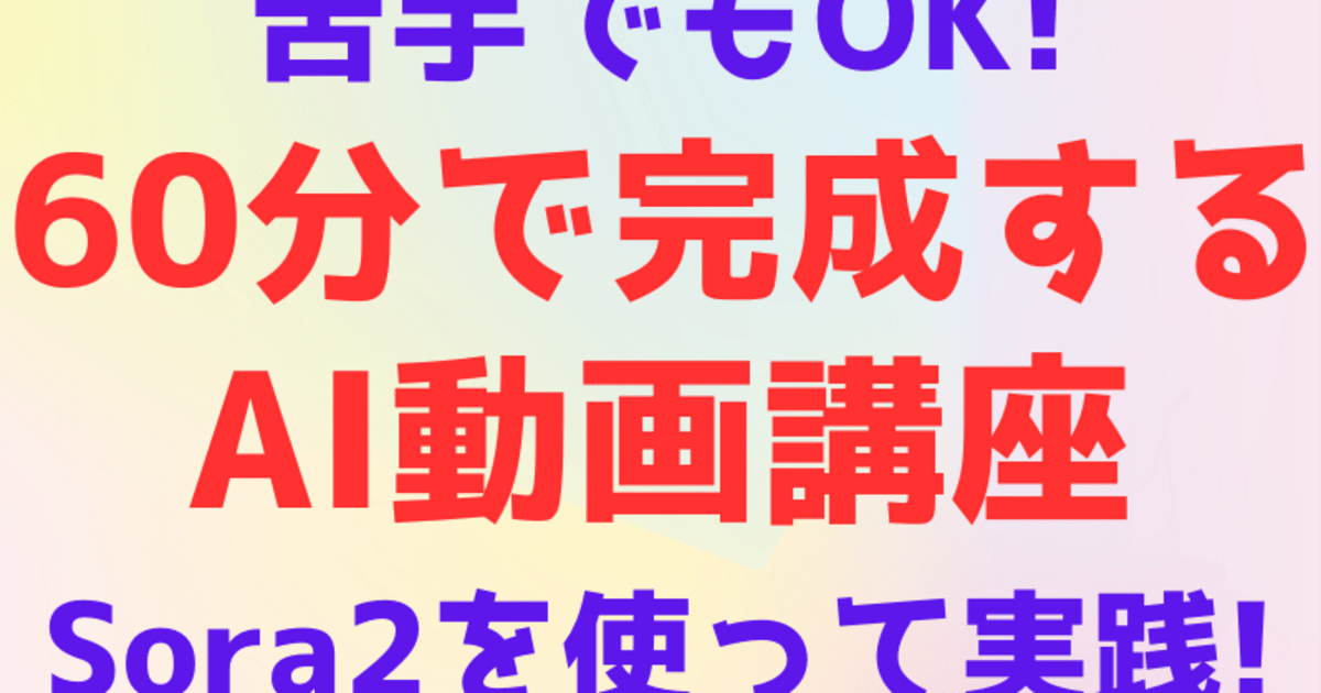 今話題のAI動画アプリ「Sora2」を使い、60分で動画を完成させる入門講座です。