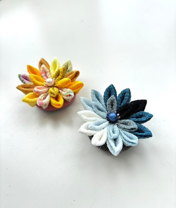 つまみ細工は、布を小さくつまんで花びらを作る、日本の伝統工芸のひとつ。難しそうに見えますが、初めての方でも美しく仕上がる方法を、どなたにも分かりやすくお伝えしますのでご安心ください。