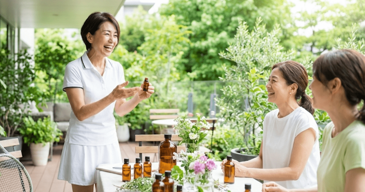 「今日が人生で一番若くて楽しい日」 私はそう意識しながら、日々の暮らしを大切にしています。テニスや音楽を楽しみ、健やかな毎日を送れているのは、アロマという心強い味方にであったからです。
