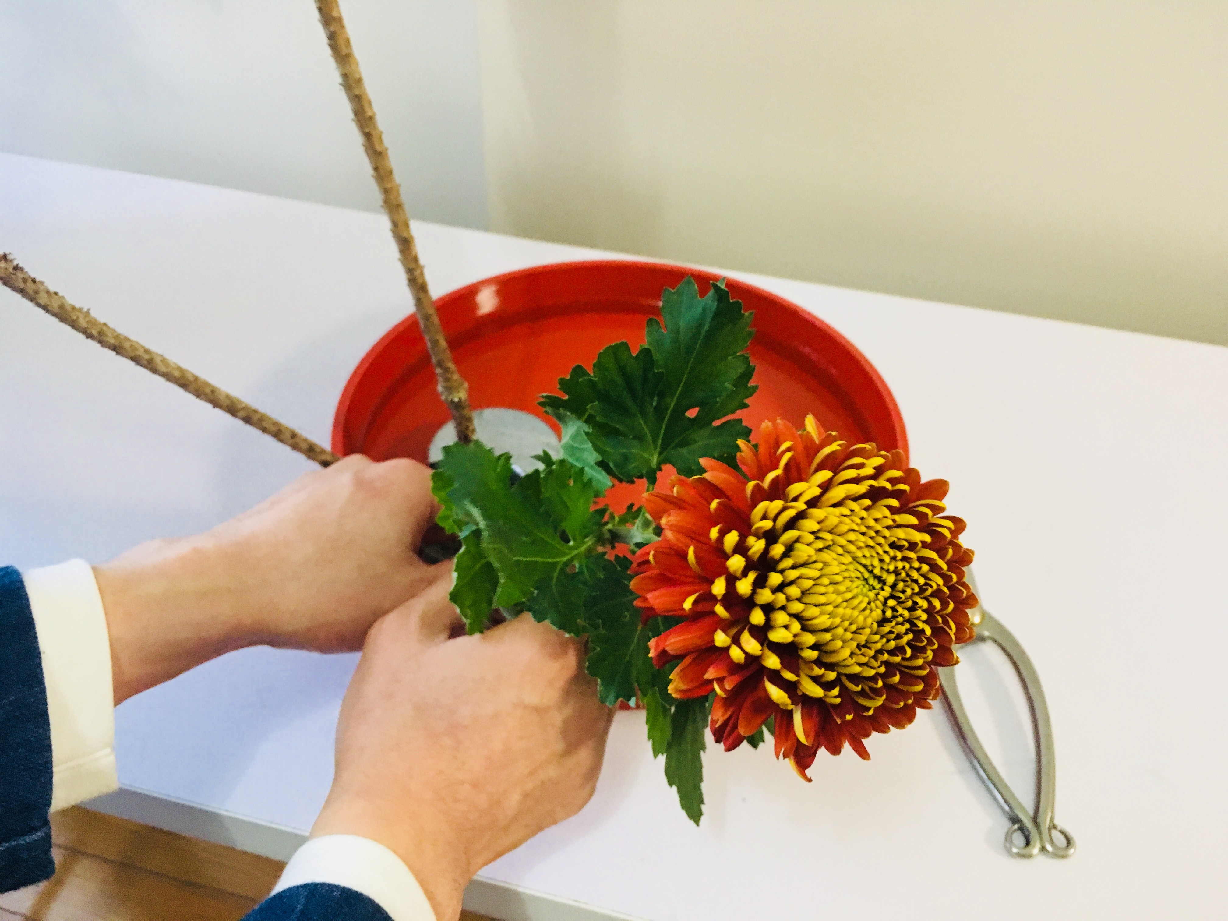 草月流の理念から丁寧にお教え頂き、自由さの中の凛とした信念が心に響きました。実際の生ける作業では、季節やお花の個性を感じ、束ではなく、一本一本と向き合う時間が心地良かったです。