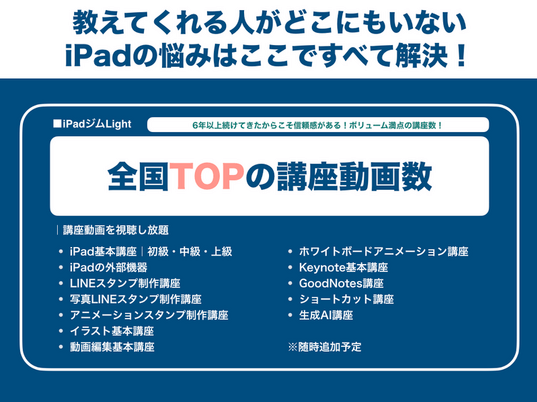 ・200本以上のiPad講座動画の視聴が可能