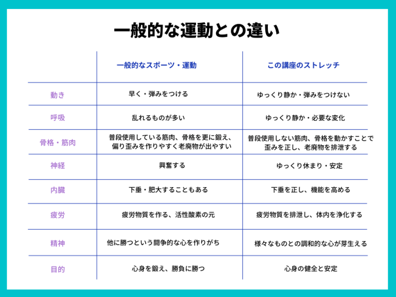 季節の身体のテーマに応じて、毎回異なるストレッチを15~20種類行いながら