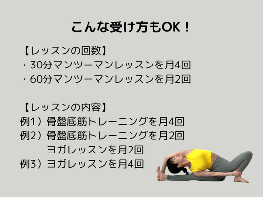 ✅ 骨盤底筋トレーニング月2回・ヨガ月2回など組み合わせは自由