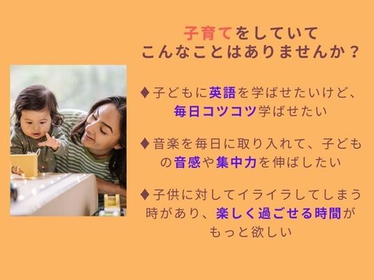 さらに、1日5分のかんたんなおうち英語を取り入れることで、子どもへのメリットはもちろん、ママの日常も楽しくなり、イライラを回避できるなどのメリットもあります。