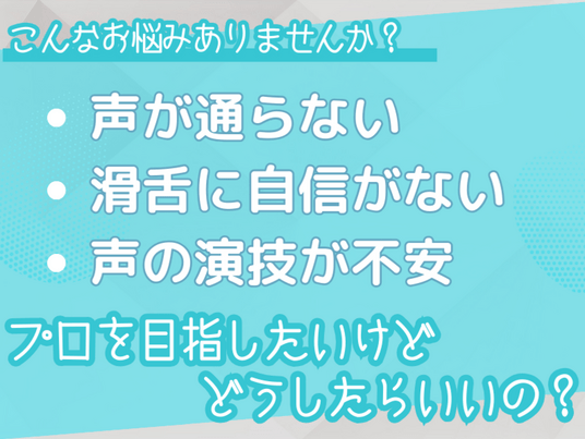 声のコンプレックスを解消したい!声優・ナレーターを目指したい!という方に!オリジナル教材を使って発声、滑舌、演技のコツを学ぶ講座です!