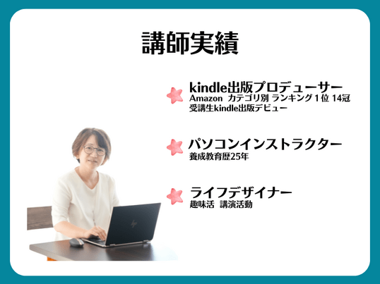 電子書籍の作り方はもちろん、「パソコン操作のつまずきやお悩み事」まで丸ごとサポートできる点が、私の一番の強みです。