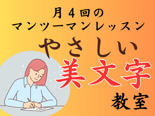 ペン習字・美文字を基礎から学びたい人のための美文字教室です。90分✕月4回、開催時間はお客様とお話しして決めさせていただきます。マンツーマンでで進めますので、ご自分のペースで楽しく学んでいただけます。