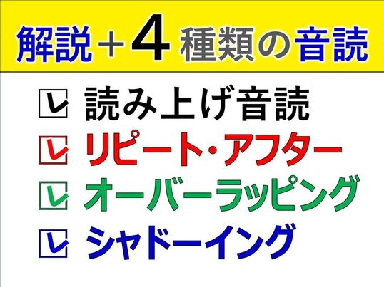 (読み上げ、リピートアフター、オーバーラッピング、シャドーイングは