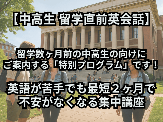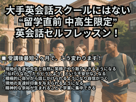 留学直前の中高生必見!現地で“すぐ使える”英会話を空港・学校・ホームステイ別に実践練習できる講座|安心して旅立てる英語力を!