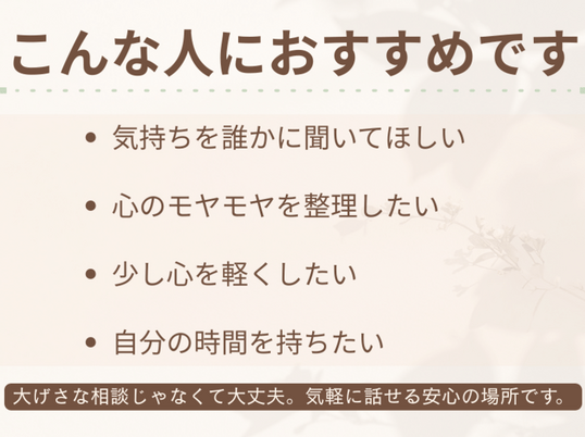 ・本サービスは、気持ちや思考の整理を目的とした 心理サポート(メンタルケア) です。
