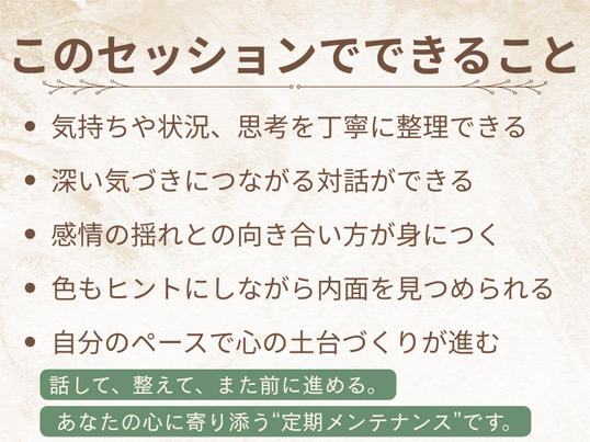 今の心の状態やテーマを一緒に見つめていきます。