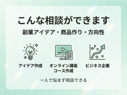 副業アイデアの整理や商品作り、在宅ビジネスの進め方について、気軽に相談することができます。