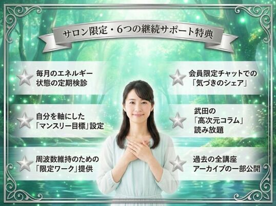 ・毎月1回の精密測定: チャクラと自分軸の状態を数値化し、あなたのエネルギー状態を可視化。