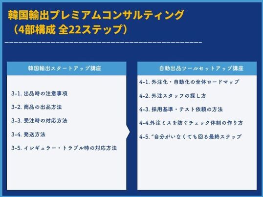 韓国EC市場をターゲットにした 無在庫×自動ツールを活用した物販ビジネスを学びながら実践できる月額サポートサービスです。
