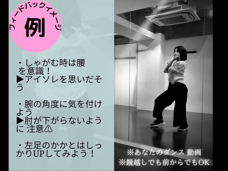 あなたのダンス練習動画を講師が見て、アドバイスをするサービスです。